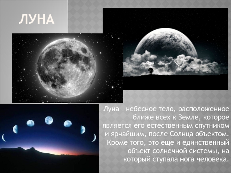 Луна – небесное тело, расположенное ближе всех к Земле, которое является