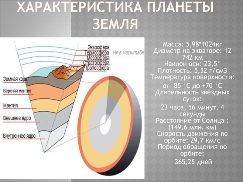 Слайд 10ХАРАКТЕРИСТИКА ПЛАНЕТЫ ЗЕМЛЯ
