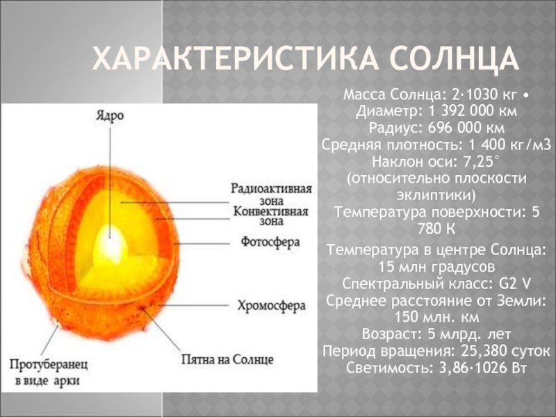 Слайд 4ХАРАКТЕРИСТИКА СОЛНЦА