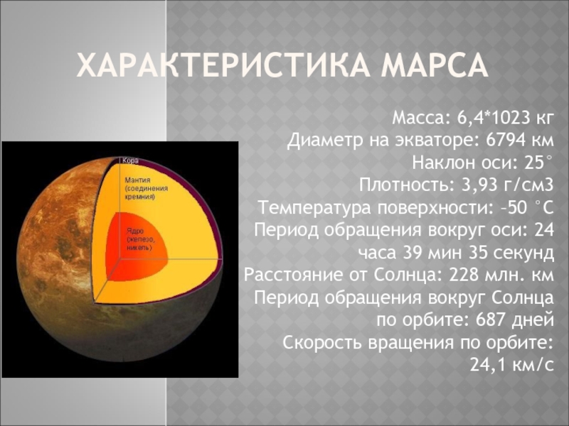 Слайд 14ХАРАКТЕРИСТИКА МАРСА