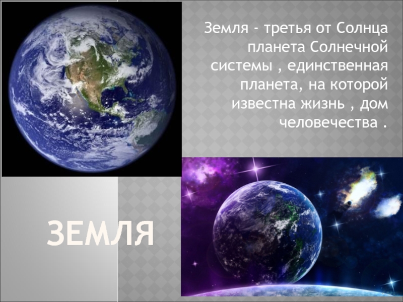Земля - третья от Солнца планета Солнечной системы , единственная планета,
