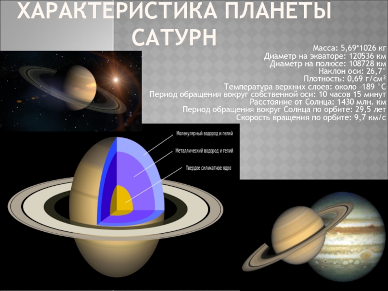 Слайд 18ХАРАКТЕРИСТИКА ПЛАНЕТЫ САТУРН