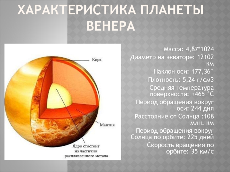 Слайд 8ХАРАКТЕРИСТИКА ПЛАНЕТЫ ВЕНЕРА