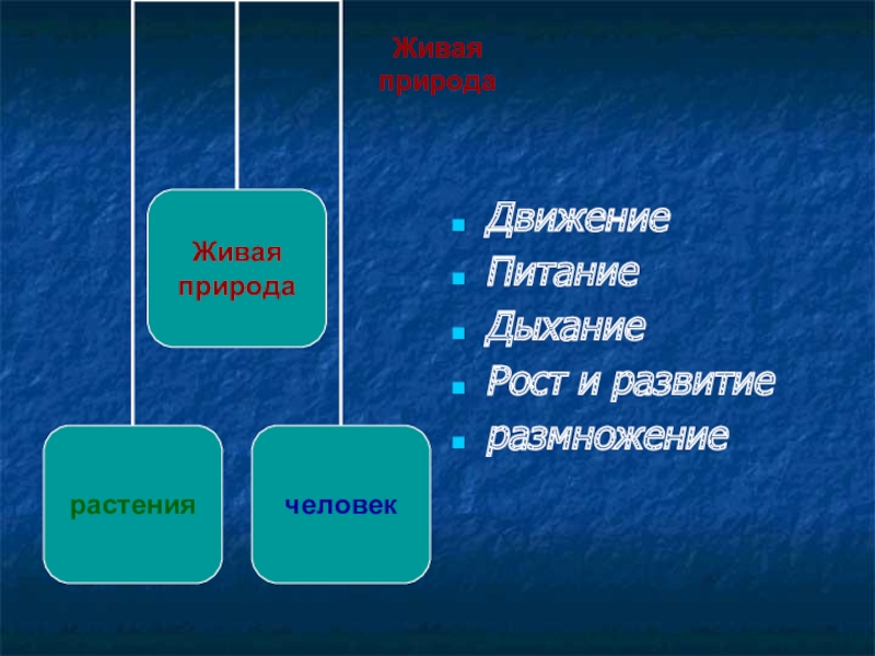 ЖиваяприродаДвижениеПитаниеДыханиеРост и развитиеразмножение