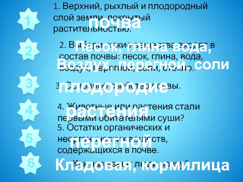 5. Остатки органических и неорганических веществ, содержащихся в почве.