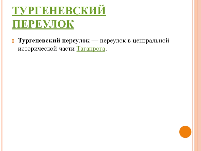 Слайд 16ТУРГЕНЕВСКИЙ ПЕРЕУЛОК