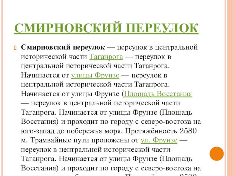 Слайд 15СМИРНОВСКИЙ ПЕРЕУЛОК