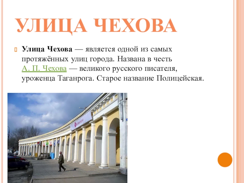 Улица Чехова — является одной из самых протяжённых улиц города. Названа