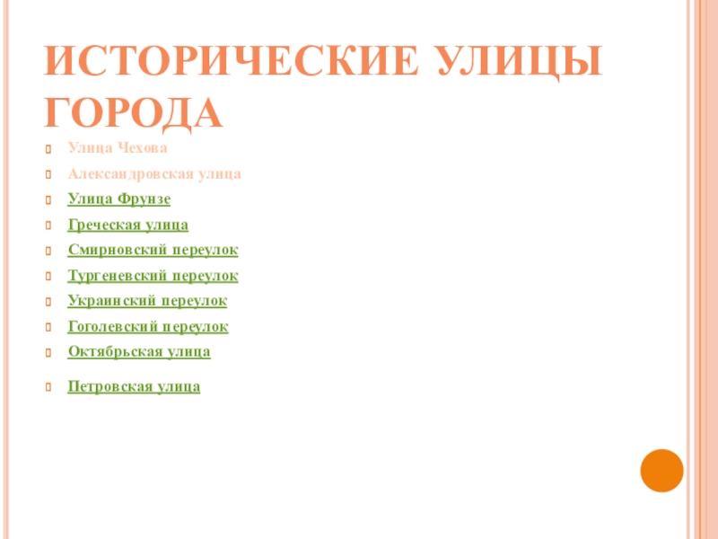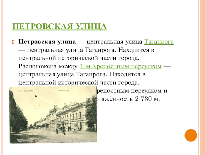 Петровская улица — центральная улица Таганрога — центральная улица Таганрога.