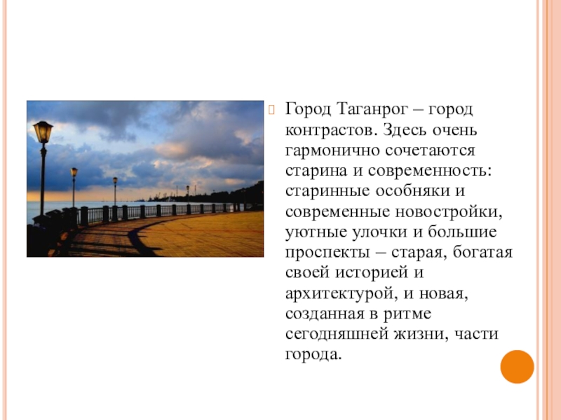 Город Таганрог – город контрастов. Здесь очень гармонично сочетаются старина и
