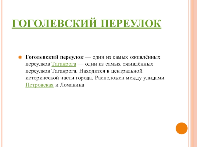 Слайд 18ГОГОЛЕВСКИЙ ПЕРЕУЛОК