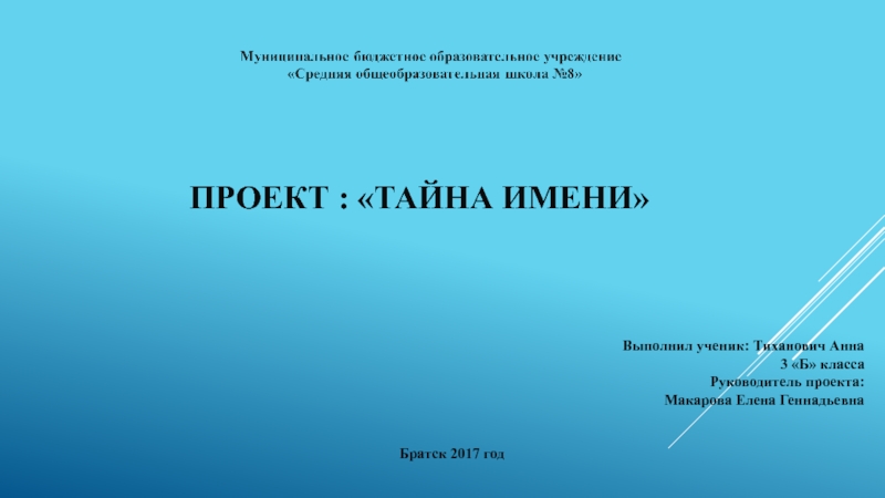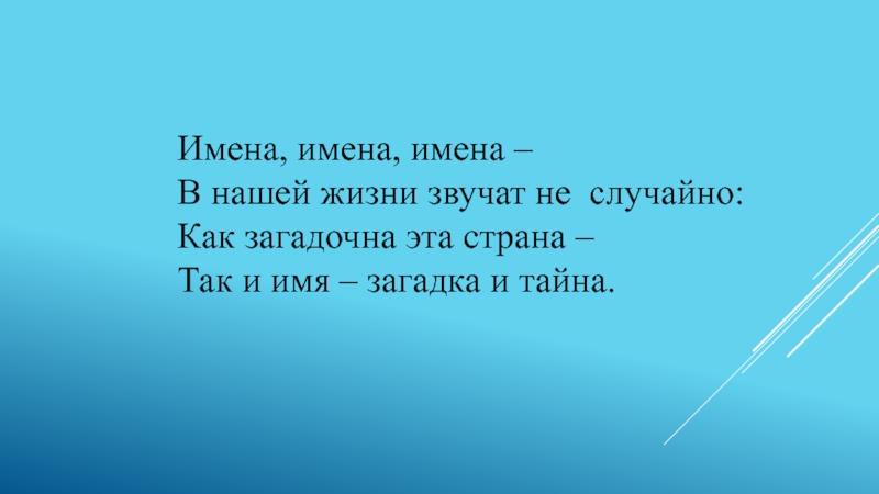 Имена – привычные на слух слова, а за ними открывается целый мир и неповторимая судьба человека. Имя много значит для человека. Оно раскрывает характер человека, может повлиять на его судьбу.