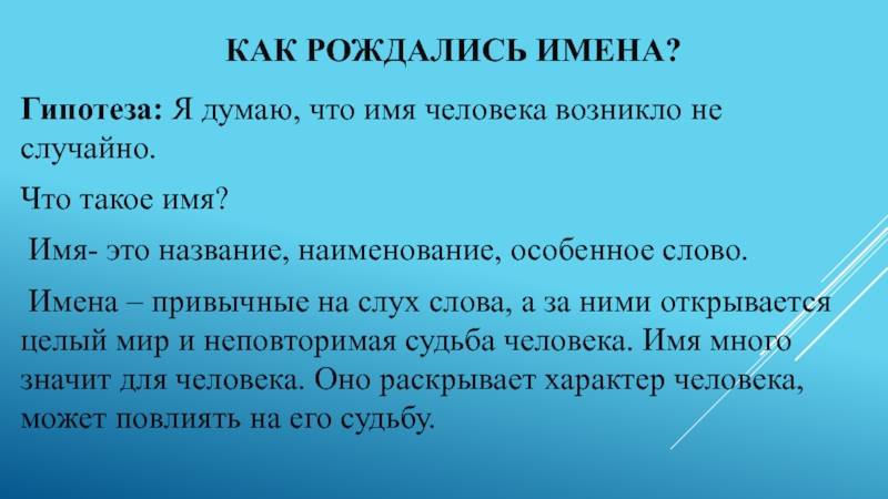 Гипотеза: Я думаю, что имя человека возникло не случайно.