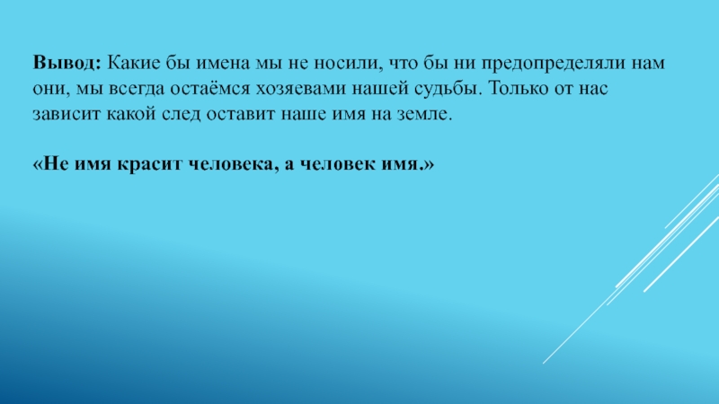 Слайд 12Вывод: Какие бы имена мы не носили, что бы ни предопределяли