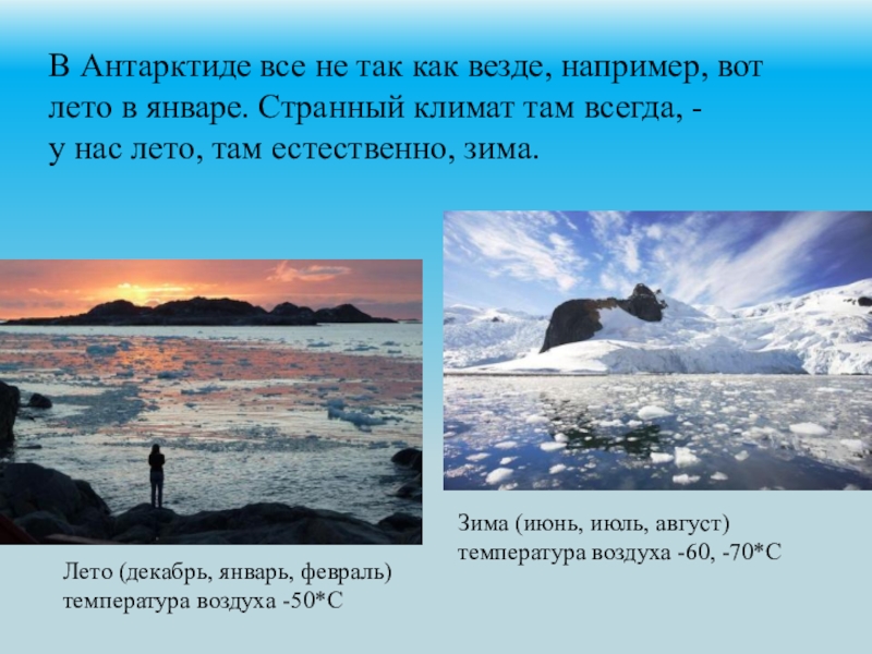 Лето (декабрь, январь, февраль) температура воздуха -50*С