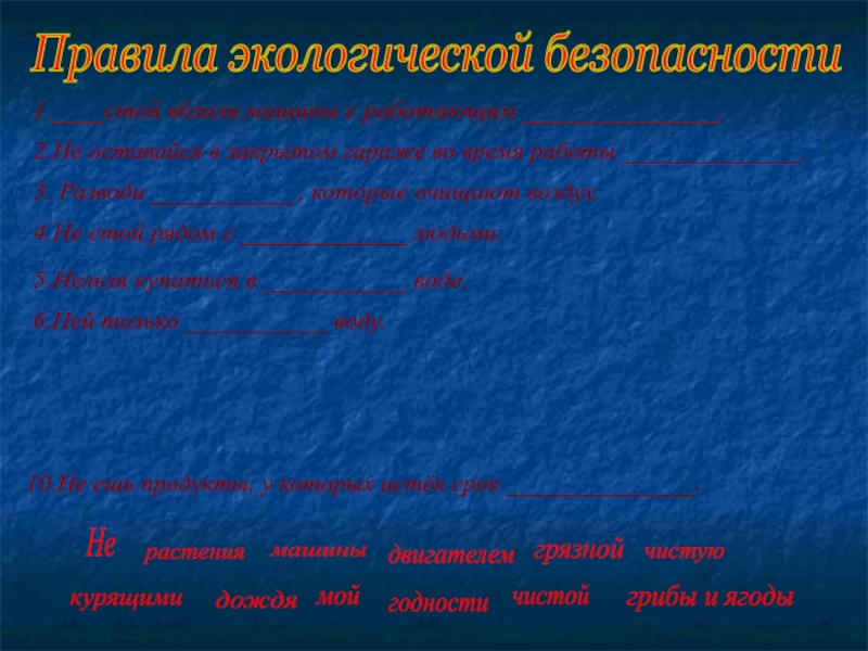8.Не собирай _________________ вблизи дорог, заводов, свалок.