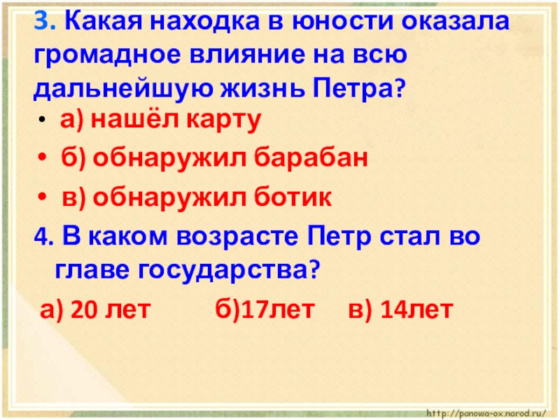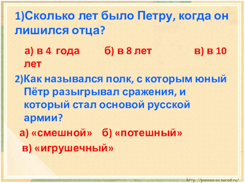 4. В каком возрасте Петр стал во главе государства?