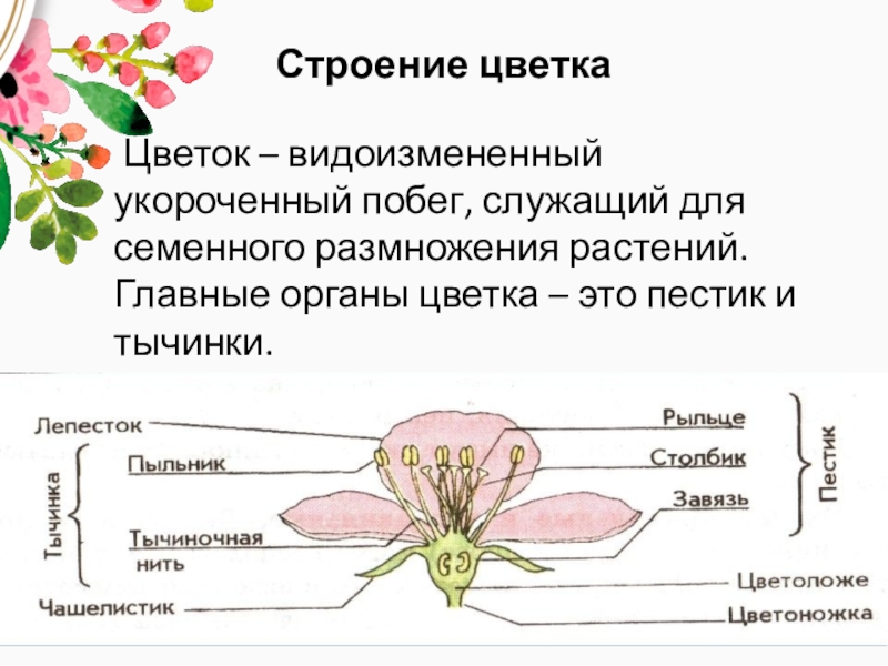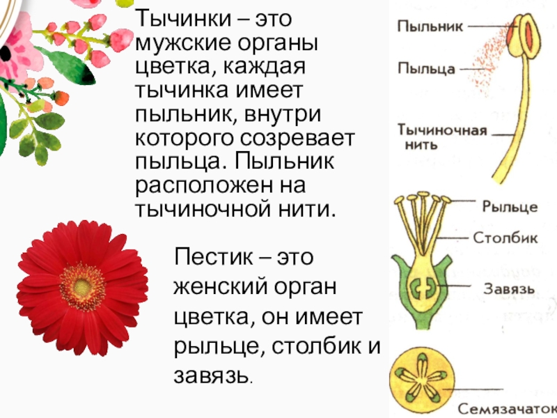 Пестик – это женский орган цветка, он имеет рыльце, столбик и завязь.