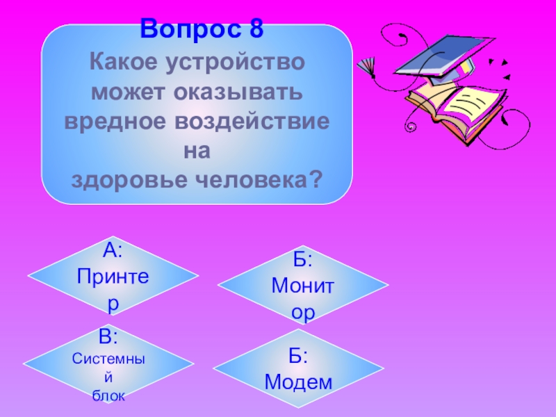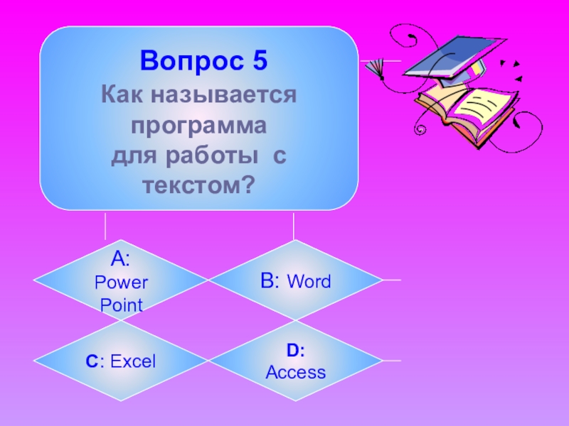 Это сайт презентаций, где можно хранить и обмениваться своими презентациями, докладами, проектами, шаблонами в формате PowerPoint с другими пользователями. Мы помогаем школьникам, студентам, учителям, преподавателям хранить и обмениваться учебными материалами.