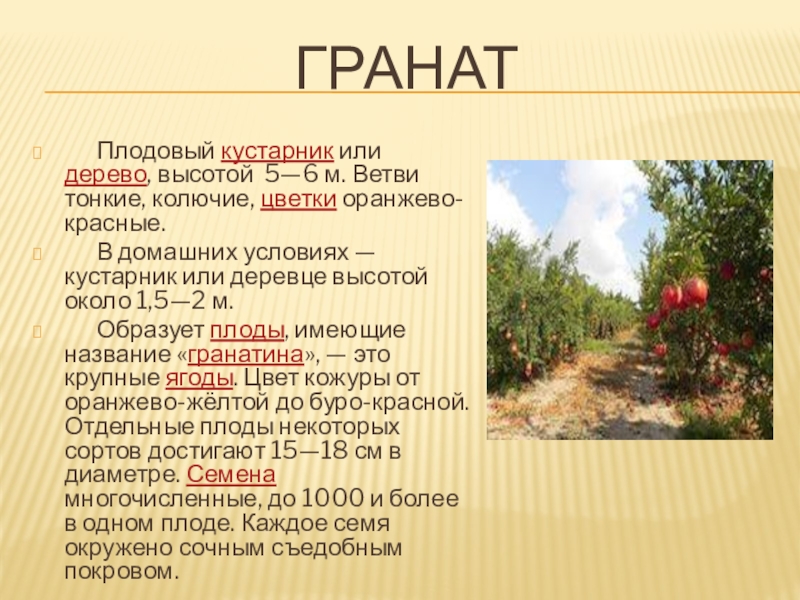 Дикорастущий гранат— гранат обыкновенный встречается в Южной Европе и в