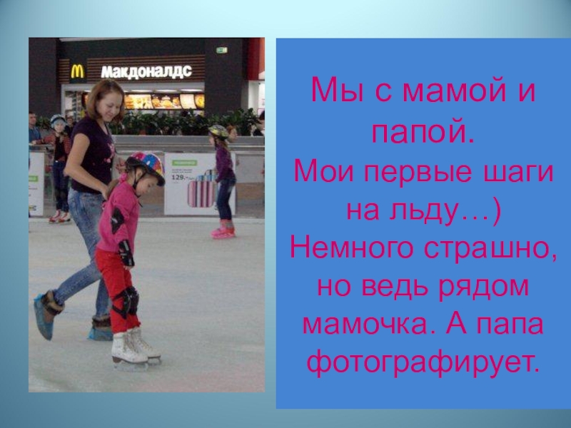 Слайд 4Мы с мамой и папой. Мои первые шаги на льду…) Немного страшно,