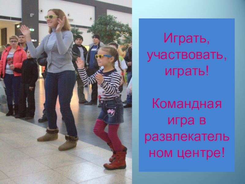 Слайд 5Играть, участвовать, играть! Командная игра в развлекательном центре!