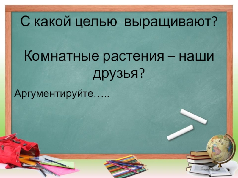С какой целью выращивают?  Комнатные растения – наши друзья? Аргументируйте…..