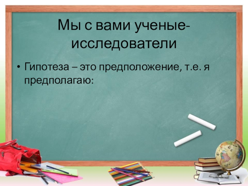 Мы с вами ученые-исследователиГипотеза – это предположение, т.е. я предполагаю: