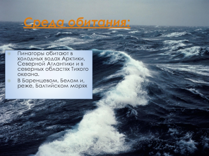 Среда обитания:Пинагоры обитают в холодных водах Арктики, Северной Атлантики и в северных областях Тихого океана. В Баренцевом,