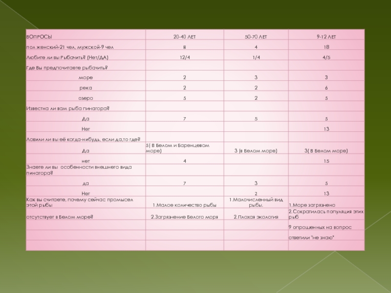 8)выяснить, почему сейчас отсутствует промысел этой рыбы в Белом море.