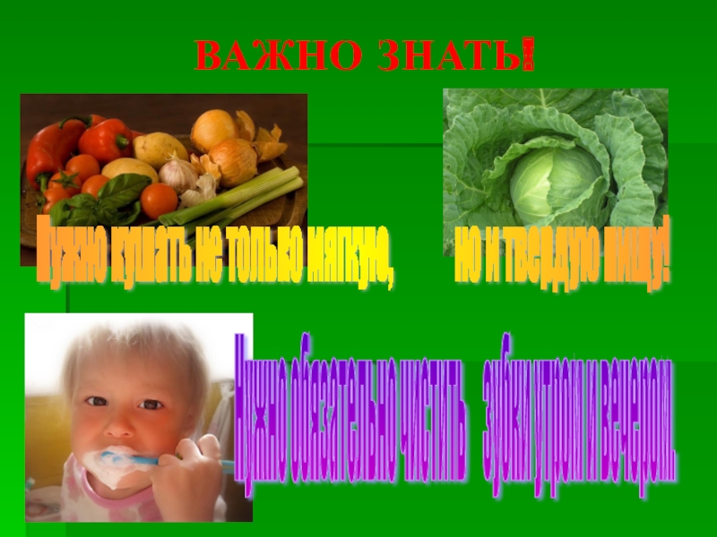 Нужно обязательно чистить зубки утром и вечером.
