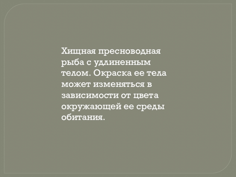 Слайд 6Хищная пресноводная рыба с удлиненным телом. Окраска ее тела может изменяться