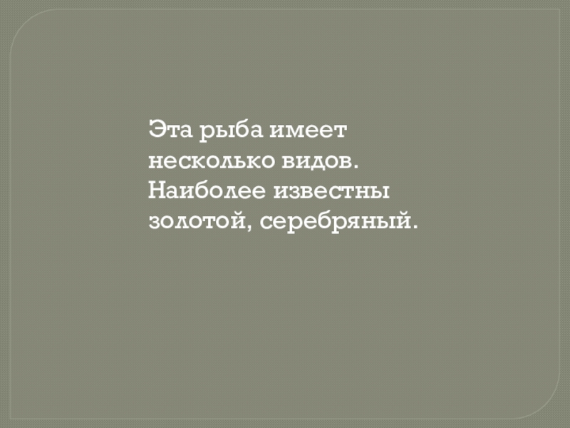 Слайд 14Эта рыба имеет несколько видов. Наиболее известны золотой, серебряный.