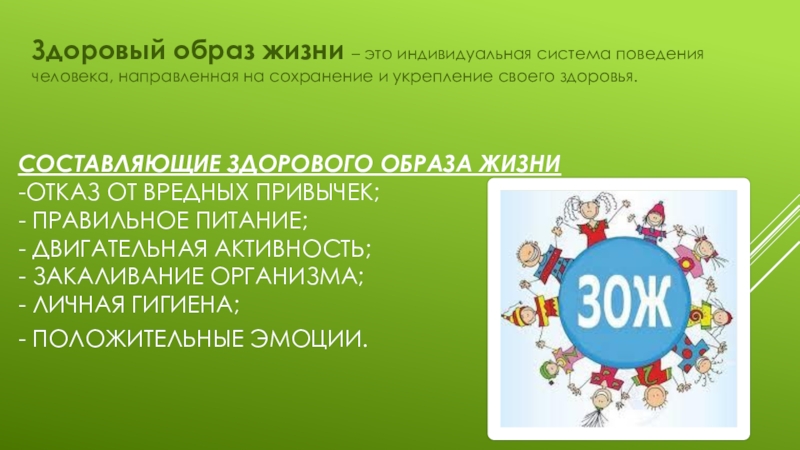 Здоровый образ жизни – это индивидуальная система поведения человека, направленная на сохранение и укрепление своего здоровья.