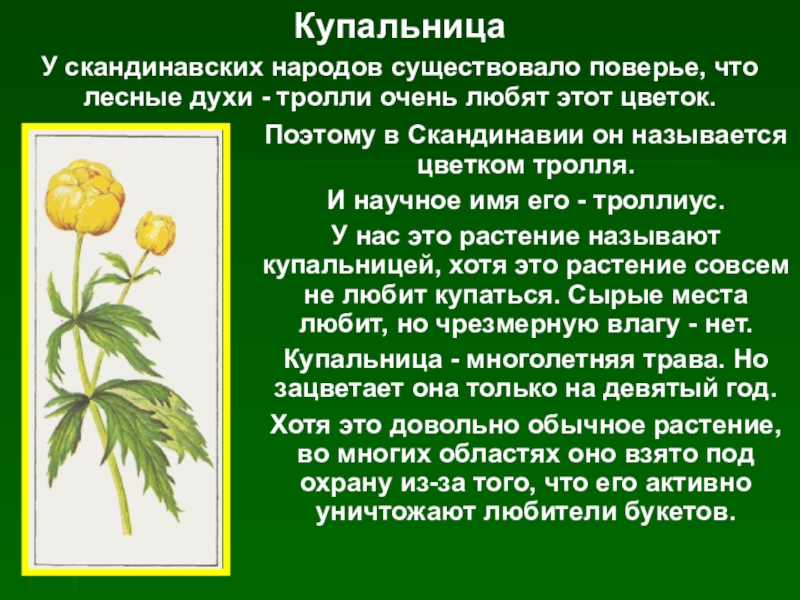 Купальница - многолетняя трава. Но зацветает она только на девятый год.