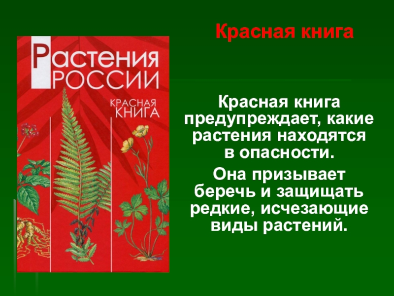 Многие растения и животные стали редкими и занесены в Красную книгу. Красной она называется потому, что красный цвет – сигнал опасности.