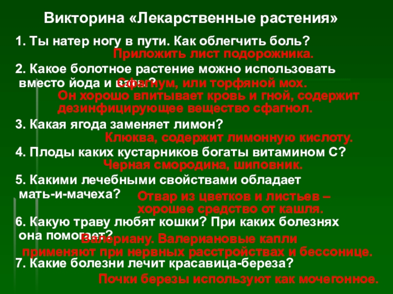 2. Какое болотное растение можно использовать вместо йода и ваты?
