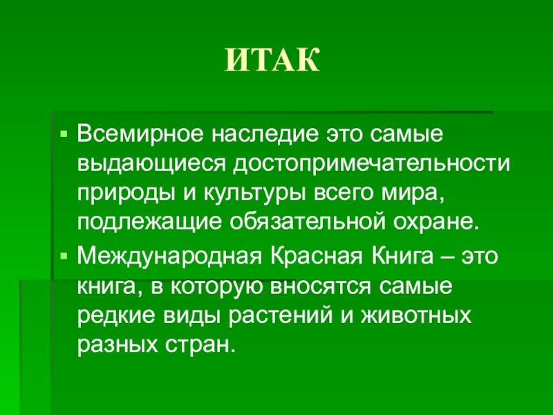 это самые выдающиеся достопримечательности природы и культуры всего мира, подлежащие обязательной охране.