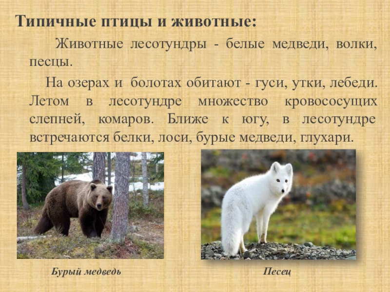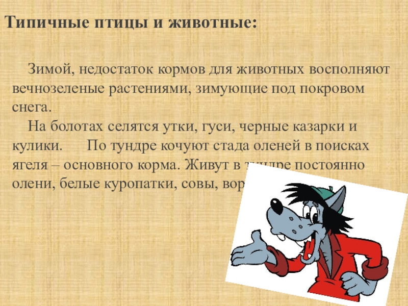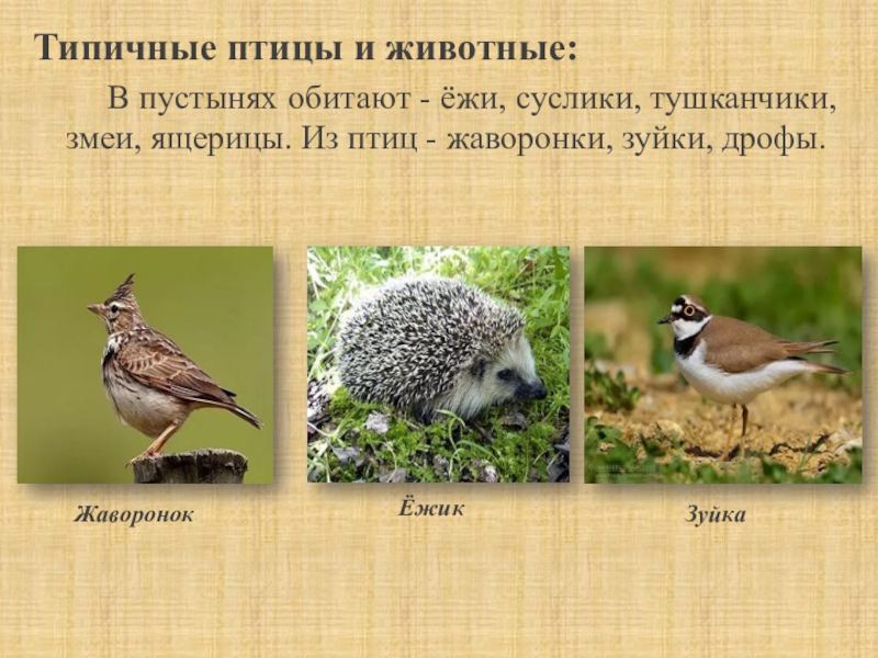 Слайд 16Типичные птицы и животные: