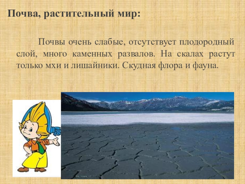 Слайд 6Почва, растительный мир: