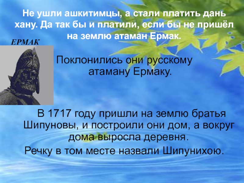 Нагрянул монгольский хан КУЧУМ и потребовал, чтобы ему платили ашкитимцы дань или убирались с ЗЕМЛИЦЫ!