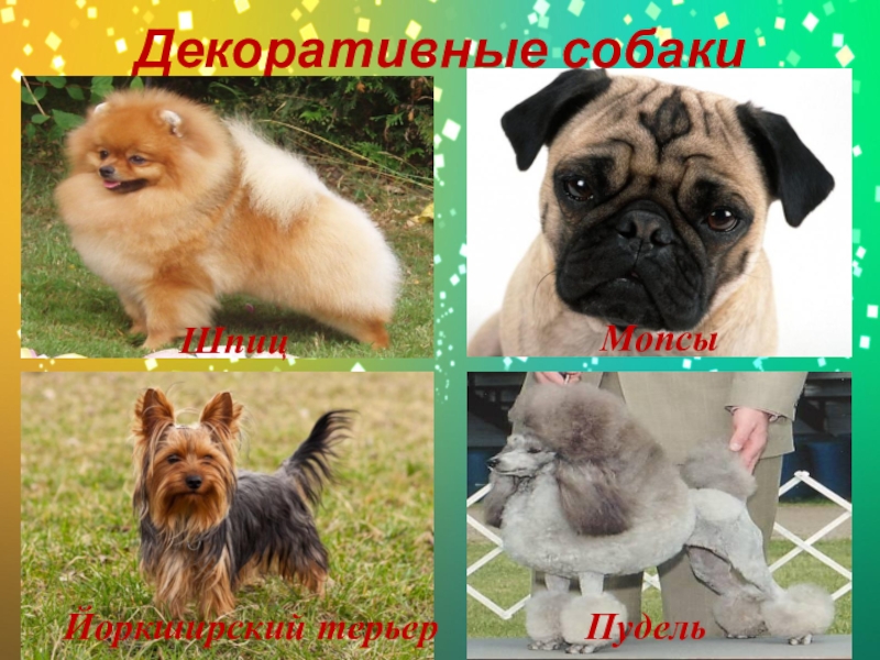 Декоративные собаки.Йоркширский терьерМопсыШпицПудель