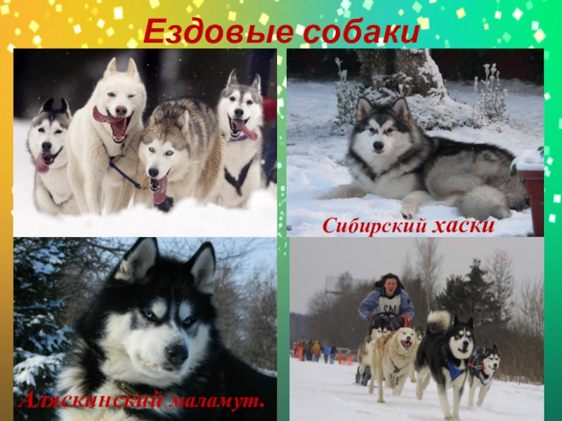Ездовые собаки.Сибирский хаскиАляскинский маламут.