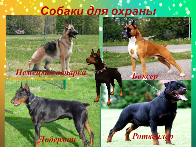 Собаки для охраны.ДоберманРотвейлерНемецкая овчаркаБоксер