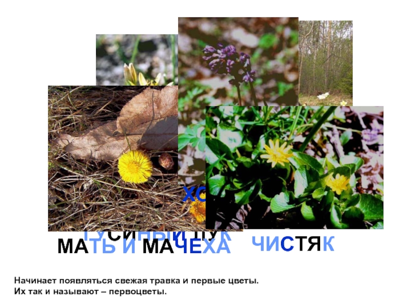 Слайд 12Начинает появляться свежая травка и первые цветы. Их так и называют