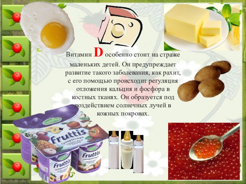 Слайд 5Витамин D особенно стоит на страже маленьких детей. Он предупреждает развитие