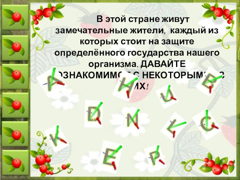 В этой стране живут замечательные жители, каждый из которых стоит на защите определённого государства нашего организма. ДАВАЙТЕ