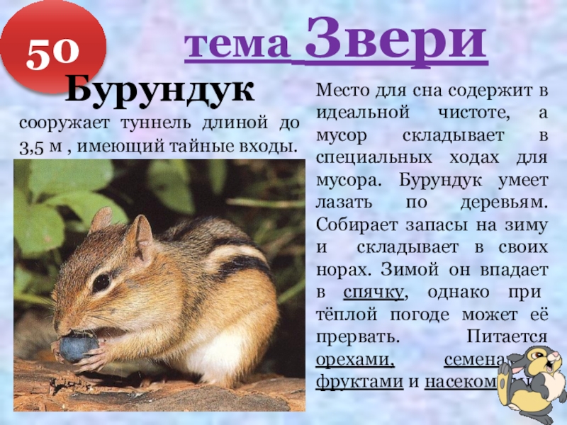 сооружает туннель длиной до 3,5 м , имеющий тайные входы.