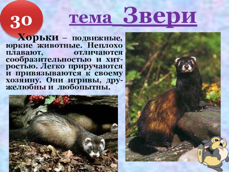 плавают, отличаются сообразительностью и хит-ростью. Легко приручаются и привязываются к своему хозяину. Они игривы, дру-желюбны и любопытны.