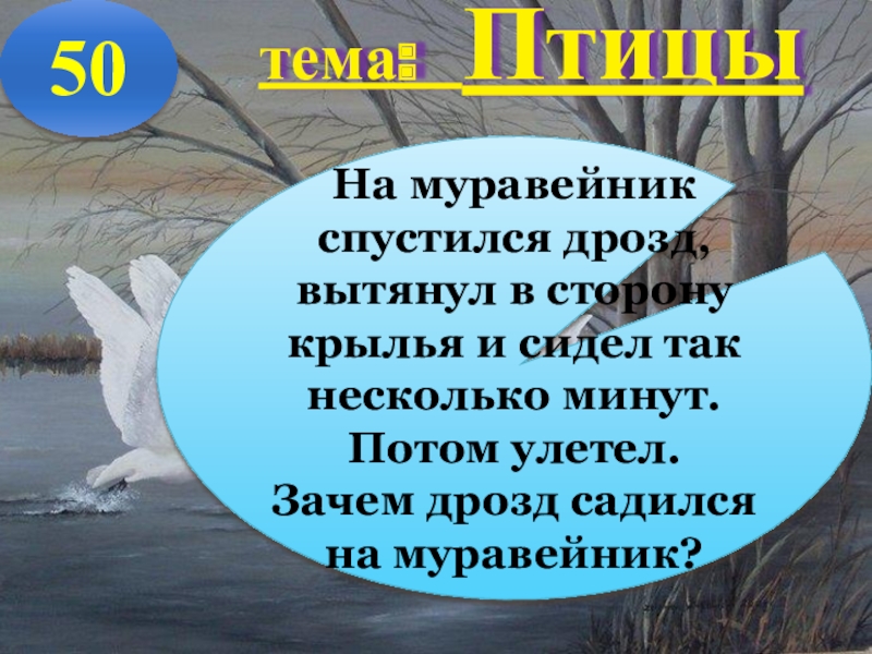 так несколько минут. Потом улетел. Зачем дрозд садился на муравейник?